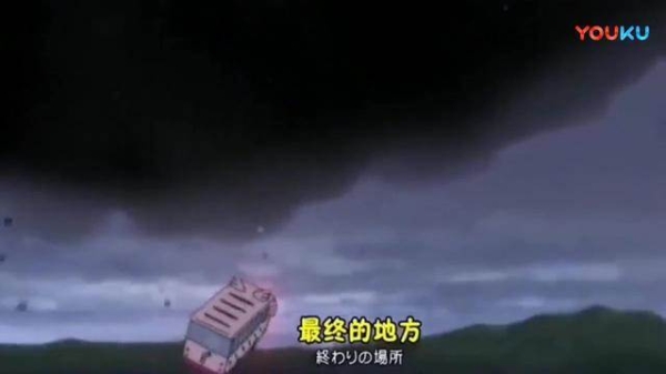 娃娃車越接近洞口,車身越不穩定。在翻轉中小新的屁股終于成功的夾斷了方塊石頭,小新和阿呆在熟悉的公園醒來。阿呆慶倖死裡逃生,沒心沒肺的小新已經憋了很久,沖向廁所。