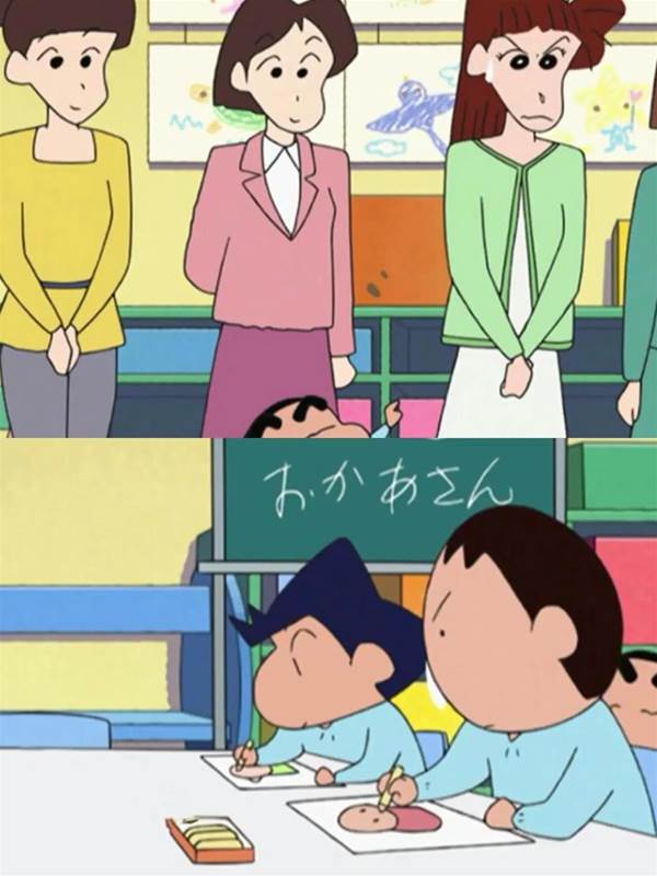 在動畫版第187集中, 眾媽媽送孩子們去幼稚園後一齊去某家庭餐廳聚餐閒聊,但是一共只有四個媽媽,阿呆的媽媽缺席。
