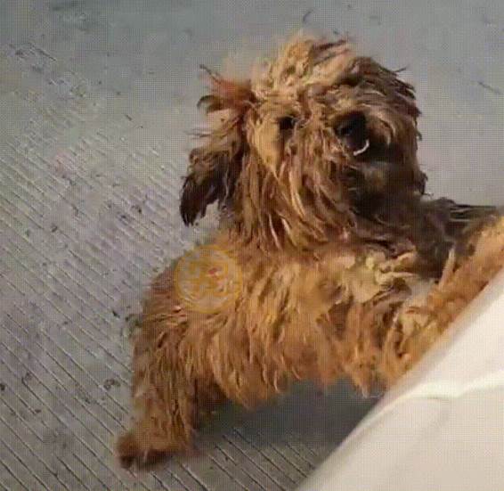 網友趕忙下車查看,眼前的小傢伙,身上毛發凌亂,臟兮兮的,看起來很是可憐。