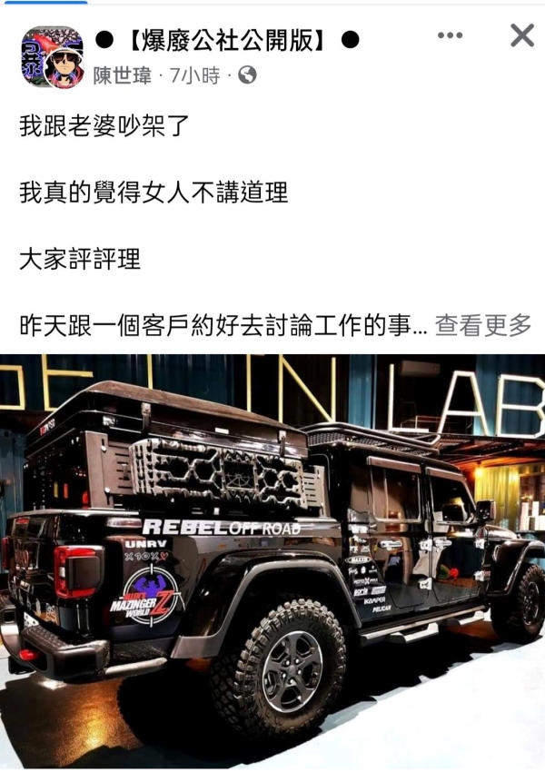 夫妻吵架原因就是老公心疼愛車太累,便開去汽車旅館讓汽車休息,老婆氣壞了:騙誰阿?