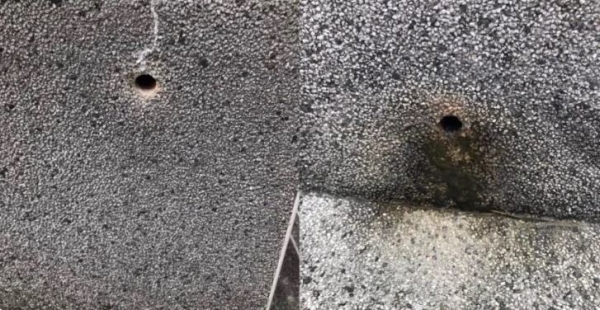 「上面比較乾淨的是通氣用的,還有對不準跑掉的痕跡,下面比較髒排水的,而且有段時間了。」