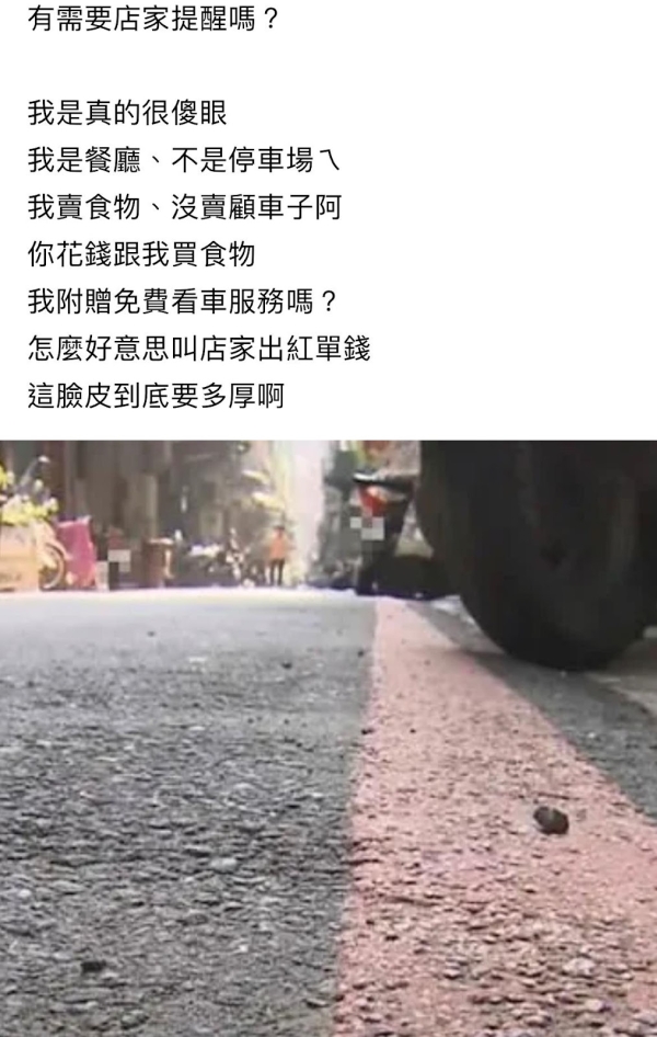我是餐廳、不是停車場ㄟ,我賣食物、沒賣顧車子啊!