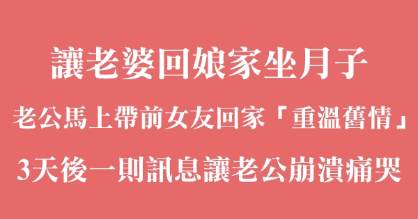 後來老婆生下孩子也是在丈母娘家做的月子,因為我媽腿腳不好,沒有辦法來照顧,這樣我就有機會把前女友接回家裡偷情了。