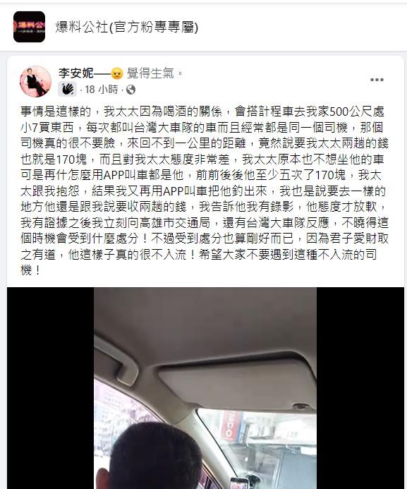 事情是這樣的,我太太因為喝酒的關係,會搭計程車去我家500公尺處小7買東西,每次都叫台灣大車隊的車,而且經常都是同一個司機。