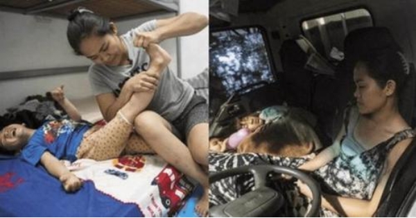 收了攤,卡車停在路邊就是一家人的床舖,儘管生活如此疲憊,看見兩個兒子的睡顏,她仍咬緊牙關繼續撐下去,孩子是她前進的動力,也是她最甜蜜的負擔!