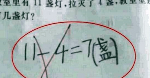 “11-4=7並沒有錯,你兒子錯就錯在於沒有仔細審題,題目問的是還剩下幾盞燈,而不是還亮著幾盞燈,燈只是熄滅了,教室裡的燈還是不多不少11盞,這道題主要考驗孩子細心審題和應變能力。”