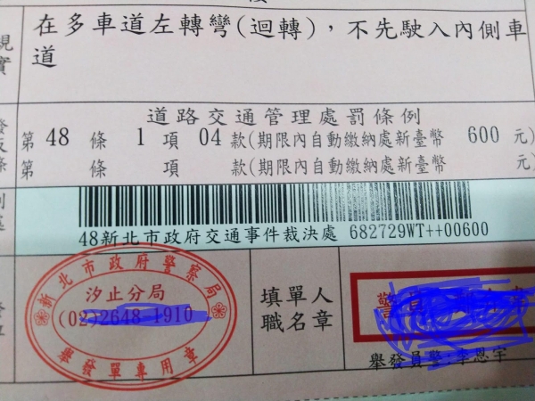 「乖乖去繳錢吧,不要浪費生命,地面標線沒有左轉指示就不要做夢以為申訴就能撤單。」