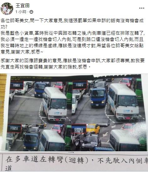 「排不進去就直走下個彎再轉或回轉,這個還想申訴?應該多開幾個小時的道安課。」