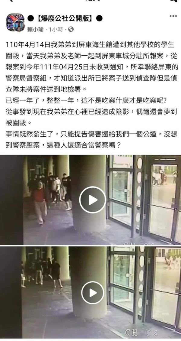 警方又吃案?屏東海生館戶外教學被他校學生圍.毆,報警後拖一年不處理,家屬怒發爆料!