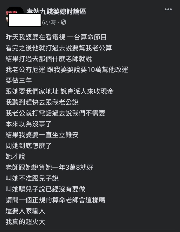 「詐騙罷了… 長輩最容易被她們的話術影響,即便妳阻止她也會乖乖去給人家騙,建議帶婆婆去警察局,讓警察給她上課。」