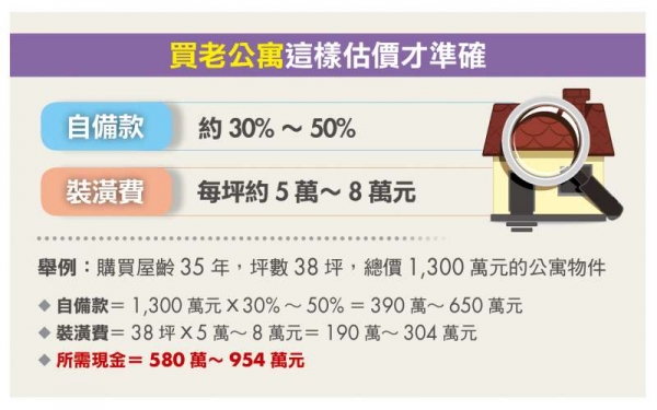 此外,銀行估算貸款的基準為「貸款年限」加「屋齡」不得超過50~60年,因此若公寓屋齡高於30年,貸款年限通常較短,且核貸成數往往僅有5~7成,民眾須準備的自備款會較屋齡新的產品來得更高,未來想轉手時,可接受的買盤也相對受限。除非公寓本身進行過整建維護或拉皮等,否則貸款的限制的確較多。