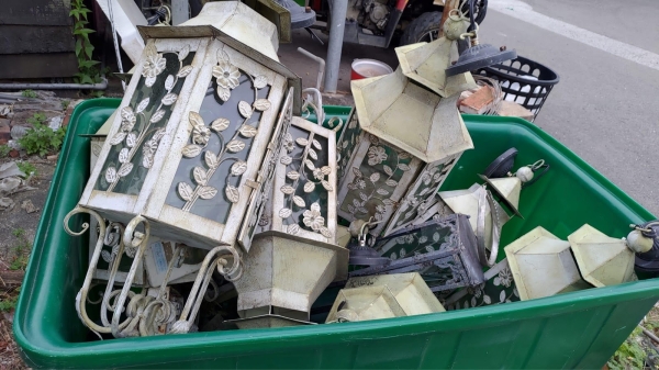 老家在整修,幾隻壁掛超過30年的燈飾暫時放在屋子旁【自家土地上】,等老家整修完後這些燈飾整理後還要再掛回!