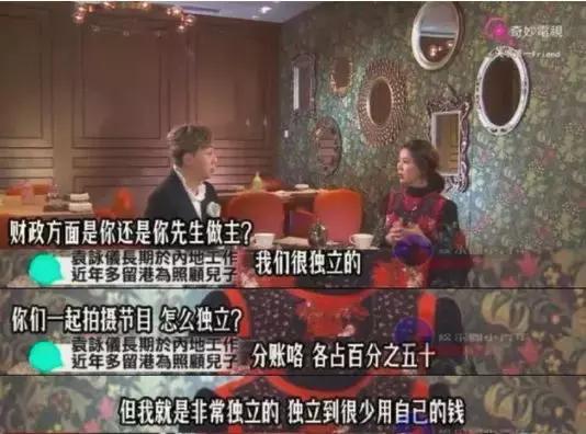 她在節目裡說,她和老公很獨立,一起上節目,錢五五分賬,