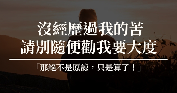 沒有經歷過他人的苦,就不輕易勸他人大度