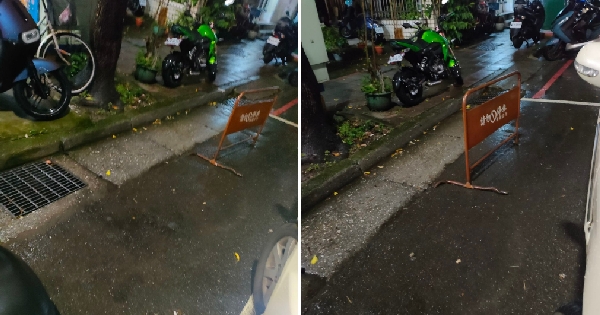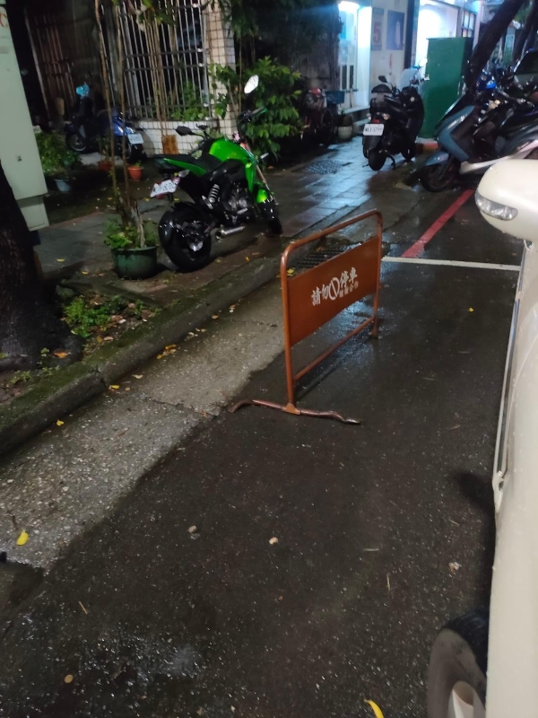 發現路邊停車格竟然被放置一個「請勿停車」的鐵牌,