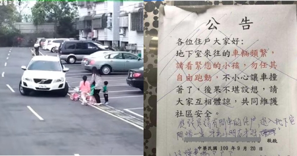 很多大樓為了避免發生意外,總是會在公告處張貼請住戶注意好自家孩子的紙條,以免小朋友一個不小心跑到常有車輛進出的停車場遊玩嬉戲而釀成眾人不樂見的悲劇,但有位家長看到這樣的公告後,不僅怒嗆「應該是車子要開慢點,小孩子懂事嗎?」,事後整起事件曝光後,更是意外迎來網友的一面倒聲浪而引起熱烈的討論。