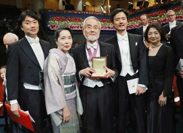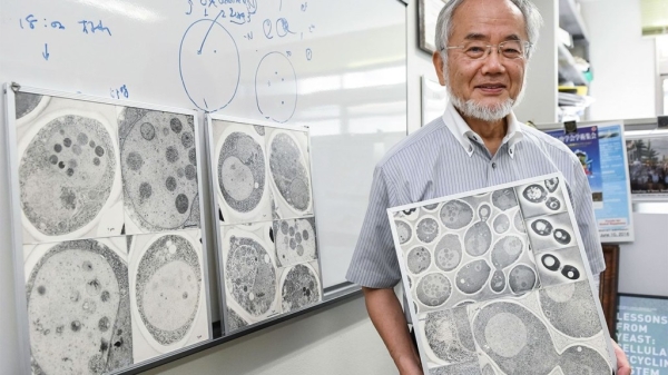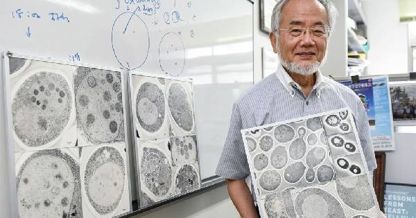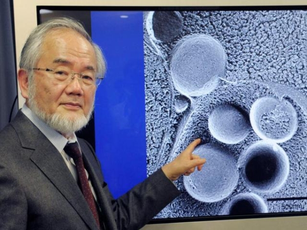 大隅良典長時間研究之後發現了「細胞自噬機制」,所謂的細胞自噬就是在溶酶體 (一種細胞器) 的幫助之下,身體可以分解不同的蛋白質結構,並且將其轉化為胺基酸,之後就會被用來創造更多的細胞。