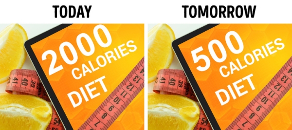 2. 間歇性禁食:這樣的方法其實比較多人會選擇,因為這不代表在禁食的日子就完全不要吃東西,而是你要在禁食日所攝取的卡路里要比平常還要少,假設你平常一天攝取2000卡路里的話,那麼在禁食日就至少要減掉500卡路里。