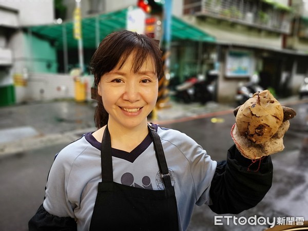 頂著大雨在路邊擺攤,烤地瓜的香氣在騎樓走廊傳開,
