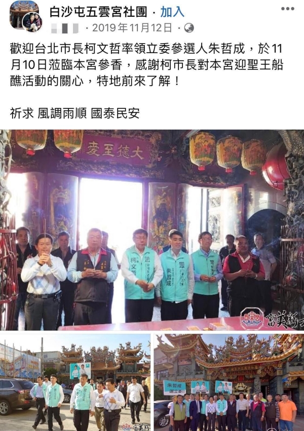 ▼台北市長柯文哲在五雲宮王船完工後曾前往參香。