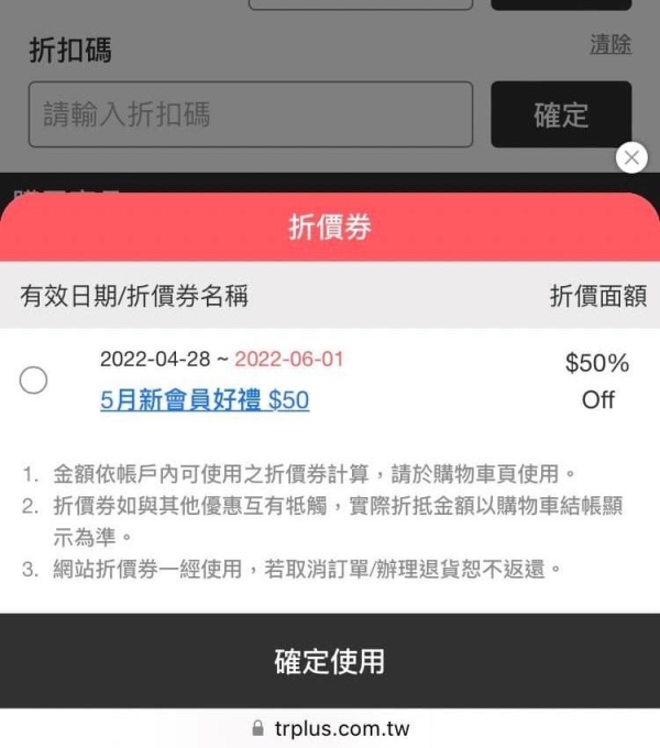 「折價卷50元,系統錯誤變成$50%,