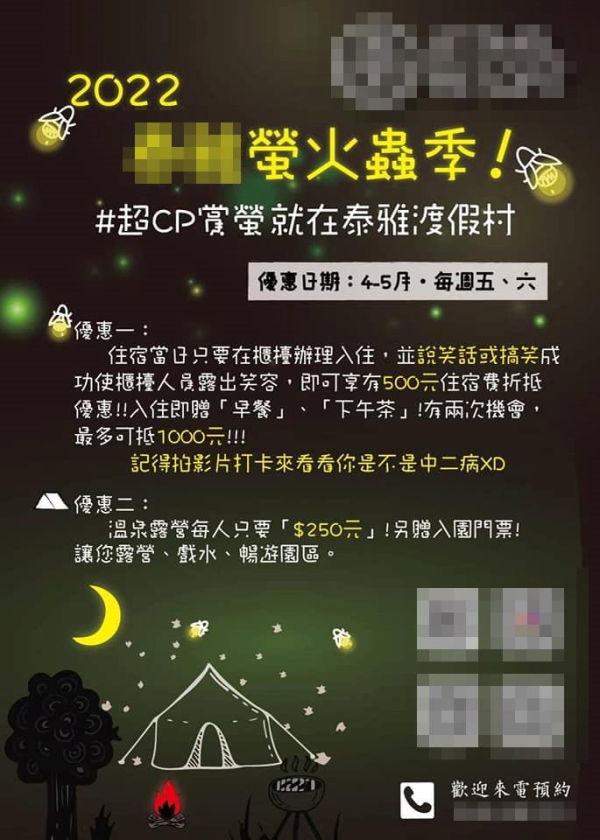 「會不會以為露營要有按摩浴缸、彈簧床之類的?」「他們可能比較適合苗栗那種星光露營,有露營車給他們睡,一個晚上最便宜六千塊的那種......」「明明是露營,怎聽起來像是想要有飯店的等級配備? 又要熱水澡又要乾淨的環境~~近期天雨,要看到螢火蟲應該本要看運氣吧(之前去看過螢火蟲也是碰運氣)」