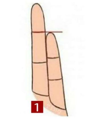 三、你的小拇指長度介於無名指的第一和第二指節中間