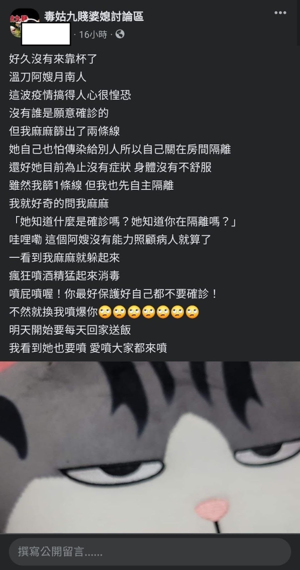 她自己也怕傳染給別人所以自己關在房間隔離,