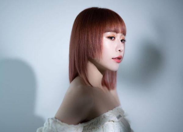 橘紅髮色配上「公主切」,直髮齊瀏海的造型使她的五官更加立體突出,也相當有氣勢。