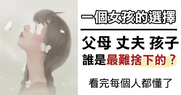 女生平靜而又緩慢地說道:「隨著時間的推移,父母會先我而去,孩子長大成人後肯定也會離我而去,真正陪伴我度過一生的只有我的丈夫。」