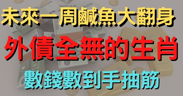 未來一周他們會遇上人生一大轉捩點,有望鹹魚翻身,外債清空,馬上名利雙收!