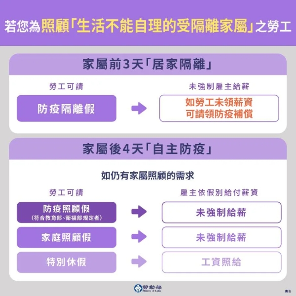 照顧隔離確診者的家屬。(圖/翻攝自勞動部臉書)