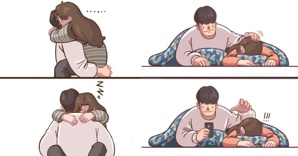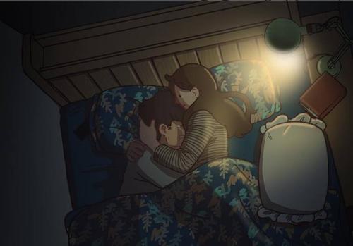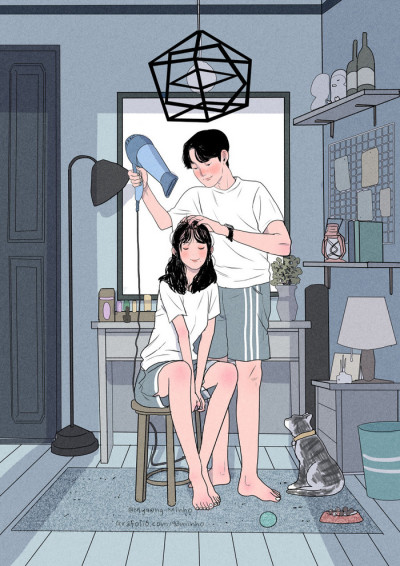 何以琛細緻地為她吹濕漉漉的頭髮。