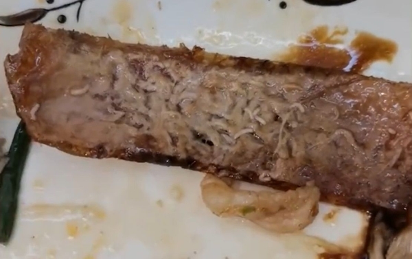 中國《網易》網站報導,鎮江市1名劉姓男子近日反映,他與親友共10人日前至1家酒樓聚餐,在吃烤鴨的時候,其中有人將鴨肉給吃了,烤鴨皮就掉落在餐盤上,但仔細一看不得了,這烤鴨皮的內層竟然爬滿了活的蛆蟲!