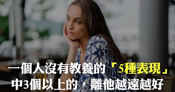 如果你身邊總是充滿沒教養的人,讓毫無疑問的是,你也會受影響,不僅是你得心情會受影響,長期以來,對你的心裡也是非常大的負擔。下面是一個人最沒有教養的5種行為。遇上了這樣的人,請趕快遠離。