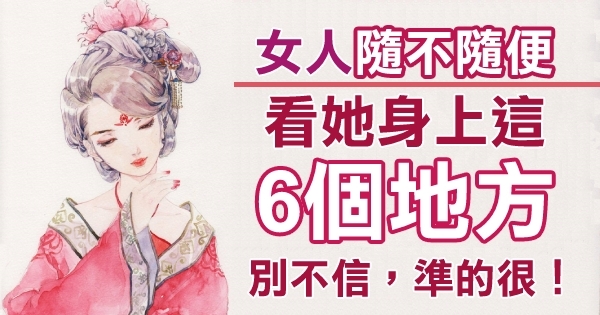男人都希望自己能找個專情的女人,那麼,要怎麼看出一個女人隨不隨便呢?就看她身上以下這6個地方就知道了: