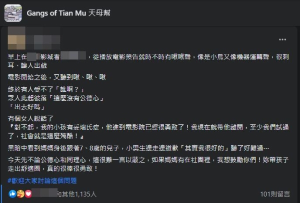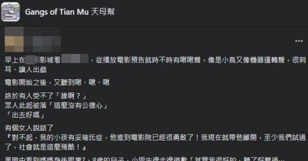 「對不起,我的小孩有妥瑞氏症,他進到電影院已經很勇敢了!
