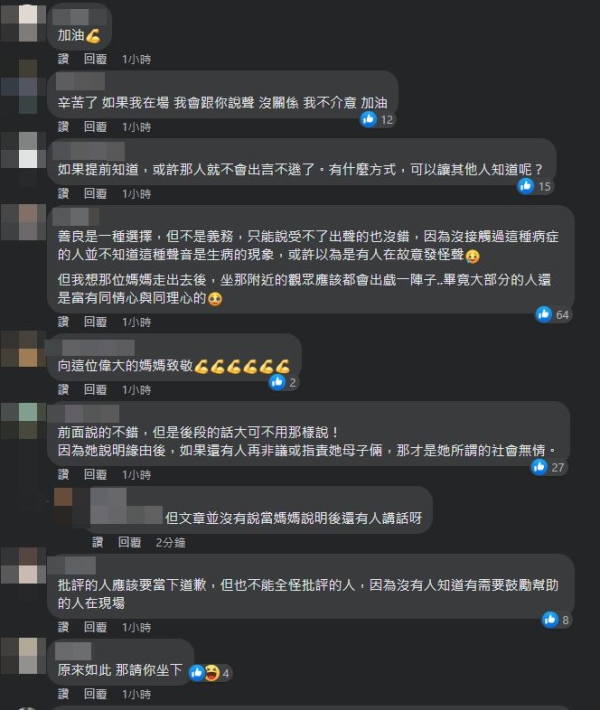 「媽媽的勇敢和不逃避我超佩服的,她的孩子長大一定會很傑出」