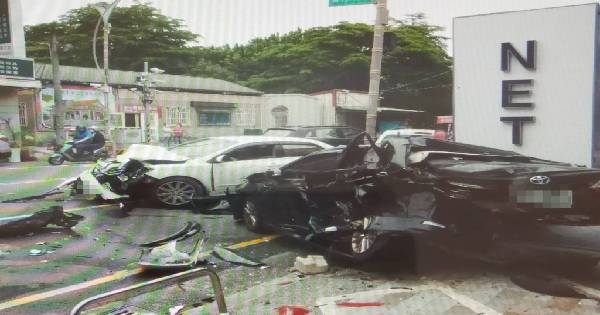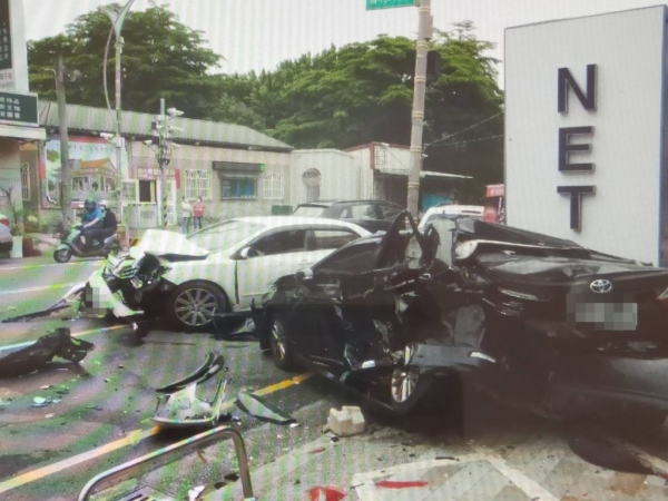 警方表示,15日上午6點52分獲報,潭子區勝利路187號前發生交通事故,到場處理發現,陳男駕駛自小客車沿勝利路北往南方向行駛,撞擊停於路邊林男(25歲)的自小客車,又撞擊許男(57歲)的自小客車及林男(52歲)的重機,又波及徒步的吳姓老翁。