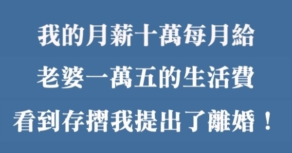 老婆生了兒子之後,我就沒有再讓她出去上班了,就讓她安心的在家帶孩子,當時我也是為了這個家拚命的工作,老闆很看重我,給我升職加薪,慢慢的我一個月也差不多有十萬多塊了,兒子一天天長大,我心裡也挺高興的,想著老婆一個人在家帶孩子也很辛苦,所以我一個月就給她一萬五的生活費,就讓她自己花,其他的花銷不算在內。