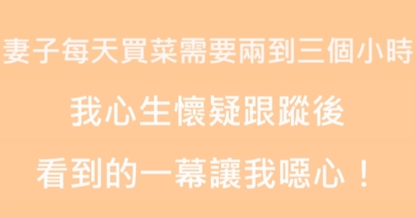 當我在家休假時,我發現老婆有點奇怪:她每天要花兩到三個小時去菜市場買菜。