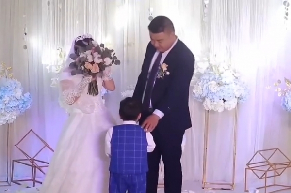 “站到你面前的這位新娘,你必須對她好,如果你敢欺負她,等我長大以後,要收拾你!“