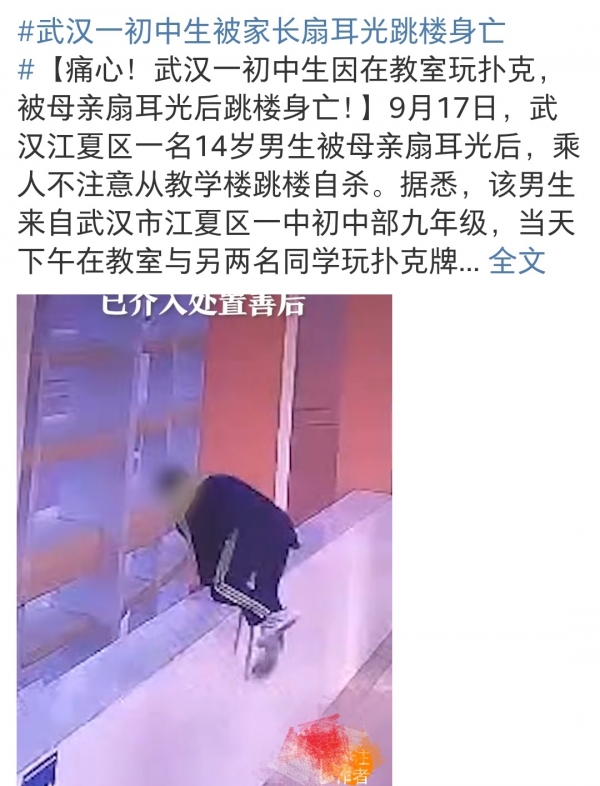 突然想起幾個月前,一起事件。一位初中的孩子在教室打撲克牌,被老師叫家長到學校了。那位媽媽在教室外,大聲地,指著鼻子罵自己的孩子。那個孩子沉默了幾分鐘,突然一個轉身,從學校的陽台跳了下去。