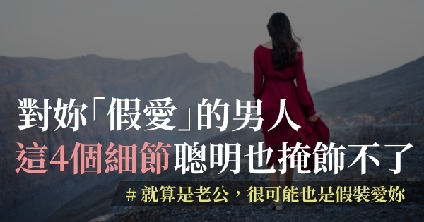 女人不知道的是,身邊有太多的男人,甚至已經成為妳的老公,都可能是對你「假愛」的!女人一定要擦亮自己的眼睛,看清楚身邊的男人,究竟是「真愛」你,還是「假裝很愛你」?
