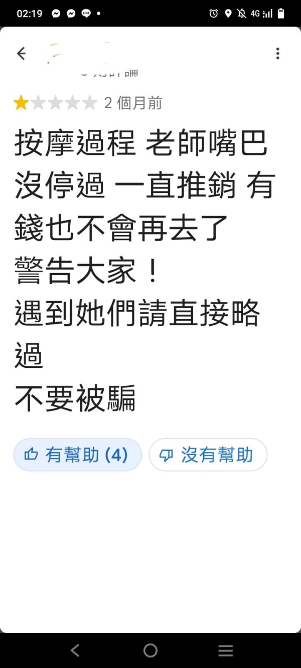 最後在20:40時,我突然急中生智問她說現在幾點,我自導自演的演出了一副我等等還有事,9點我還有工作要忙,叫她們到這就好,沒想到那個副理竟然還以不然再送你按小腿阿還有什麼其他項目為由,想方設法要繼續軟禁你到答應為止。
