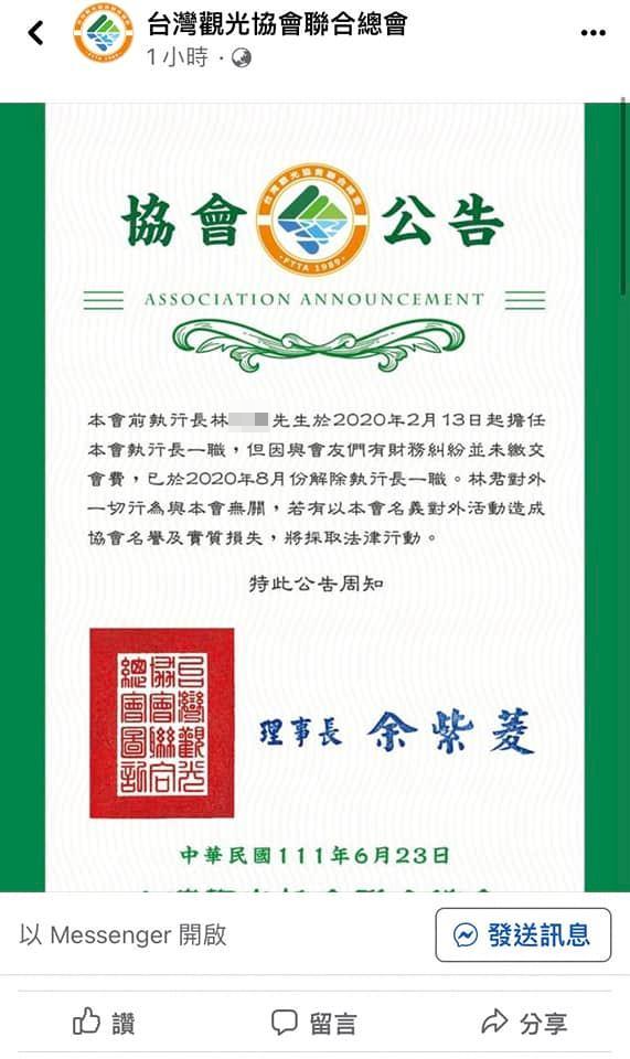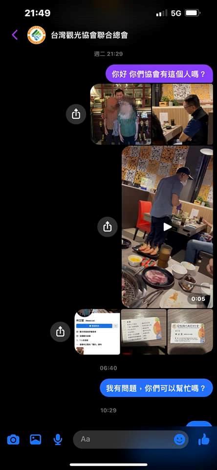 一名男網友日前到羊角炭火燒肉文心店用餐時,目睹店家被客人找碴,事後更得知該客是「台灣觀光協會聯合總會」的執行長。