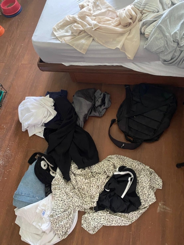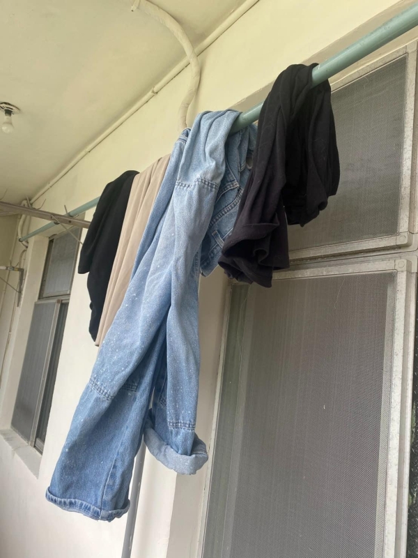 幫她把衣服收進房間叫她吊的時候,發現前幾天洗的衣服被丟在地上