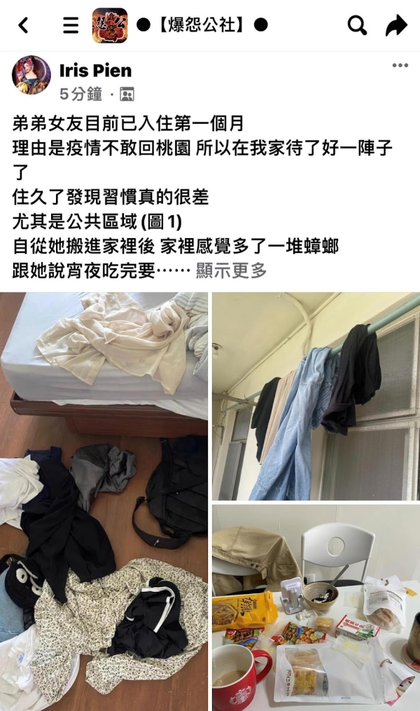 弟弟女友目前已入住第一個月,理由是疫情不敢回桃園!