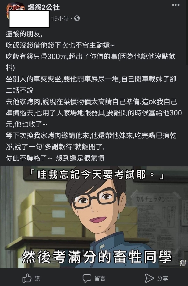 一名社員表示因朋友出門沒帶錢好心先代墊,