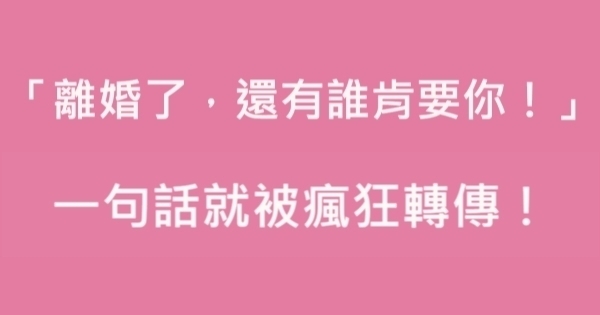 「離婚了,還有誰肯要你...」很紅的一句話......